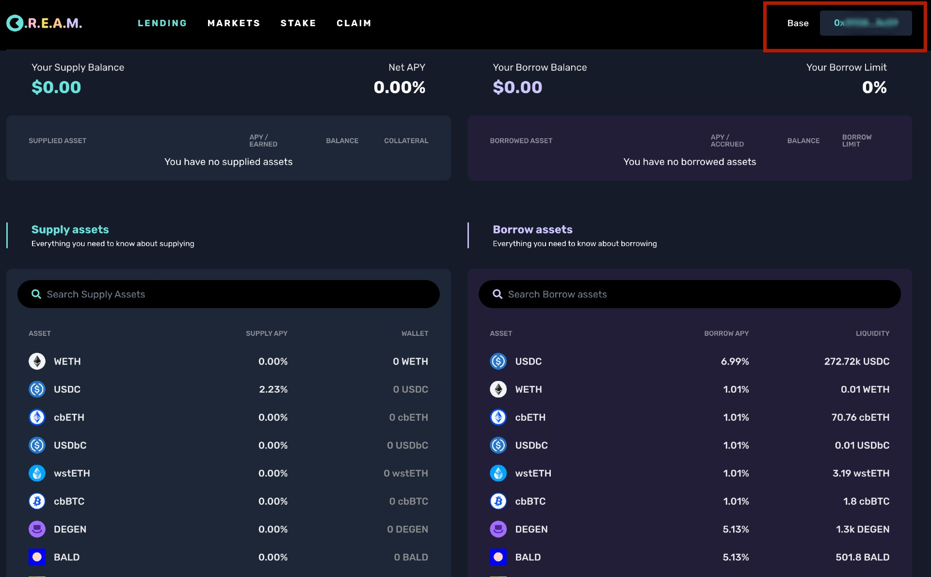 Go to https://app.cream.finance/.