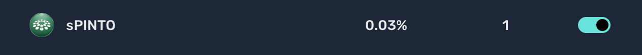 Next, you need to make your sPinto a collateral asset by clicking on the toggle on the right and signing the required transaction. Wait a few seconds and you should see the toggle turned on.