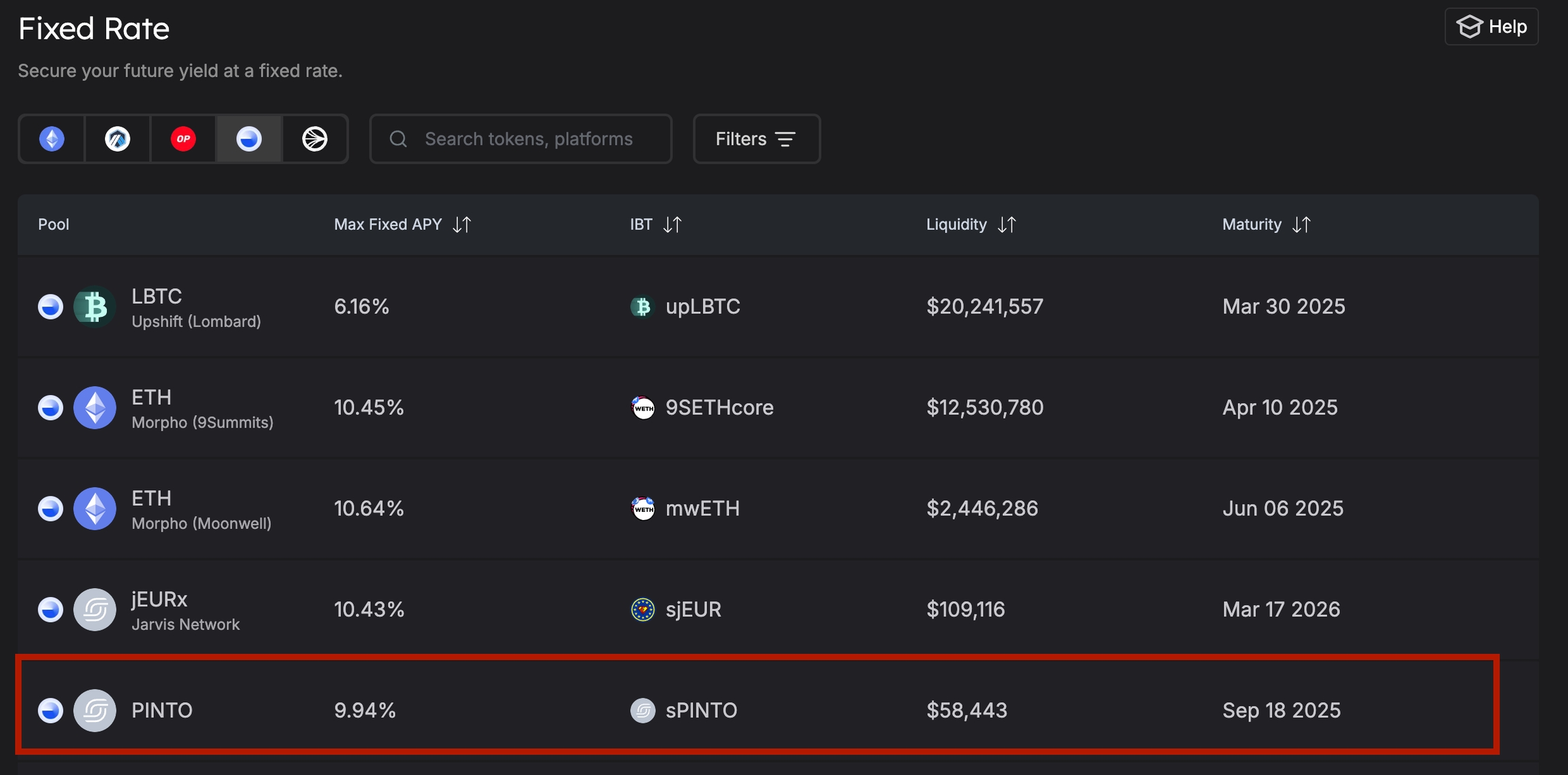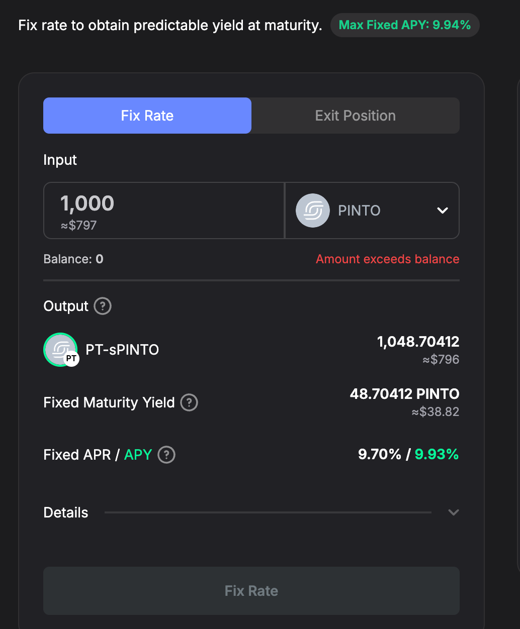 You have now successfully "fixed" sPinto yield for a period of time. You will be able to redeem your PT for Pinto at maturity.