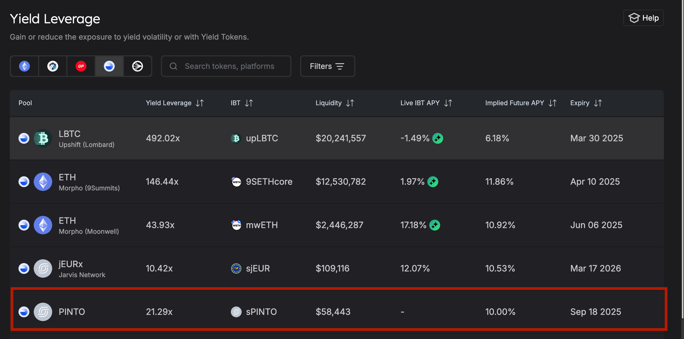 How you can get leveraged sPinto yield exposure by buying the sPinto YT (yield token).