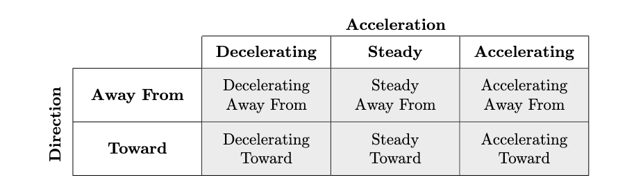 Based on a combination of the protocol's direction and acceleration, the protocol has six potential current states: