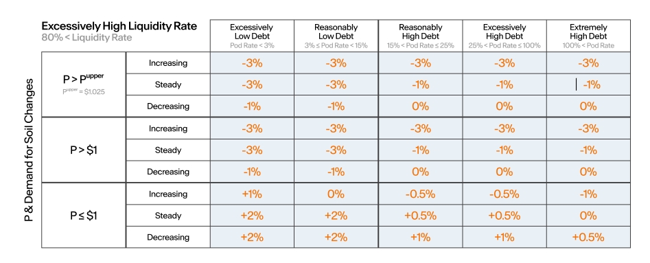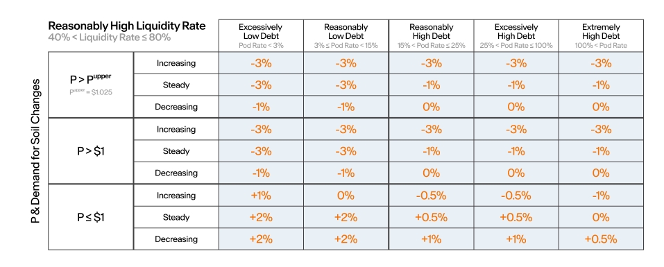 Considering the current state and the debt level, the protocol adjusts the Maximum Temperature to move toward the optimal state.